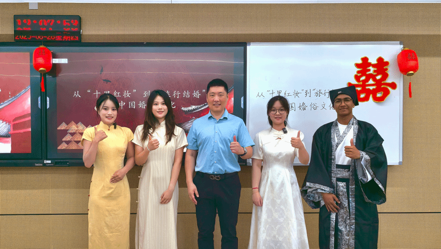 国际中文教育学系主任、学位点负责人毛海莹教授提出TEP模式(Teaching+Experience+Practice)教学理念,以“十里红妆”这一宁波特色婚俗文化为切入点,延伸至现代“旅行结婚”,系统梳理中国婚俗文化的演变脉络。