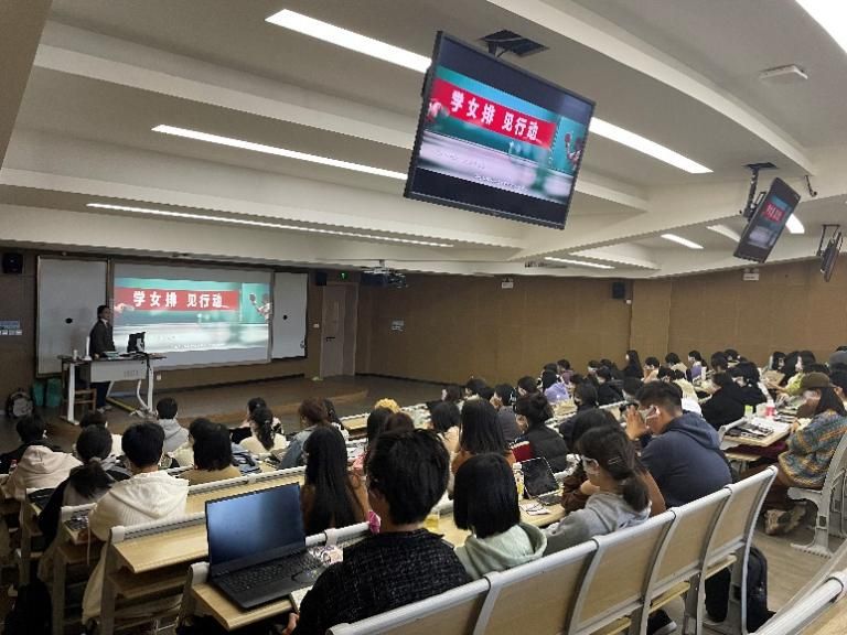在活动中,为了使同学们对无障碍电影和声声点灯项目有初步的了解,首先由团队指导老师邵慧老师作为“滨海宁波 书香四季”后浪领读人分享的无障碍书籍《听见 看见——影视媒体的无障碍传播研究》进入,引出了“声声点灯”团队成立的背景故事。接着,团队负责人林文雯同学进一步讲解了无障碍理念、口述影像的历史、团队在社区和校园里的无障碍公益电影的实践,帮助同学们更好地理解“无障碍电影”。之后,同学们观看了由“声声点灯”团队制作的无障碍电影《我和我的祖国·夺冠》。在观影过程中,同学们戴上眼罩,以感观缺失的方式“观看”影片,亲身体验视障人士的感官世界。